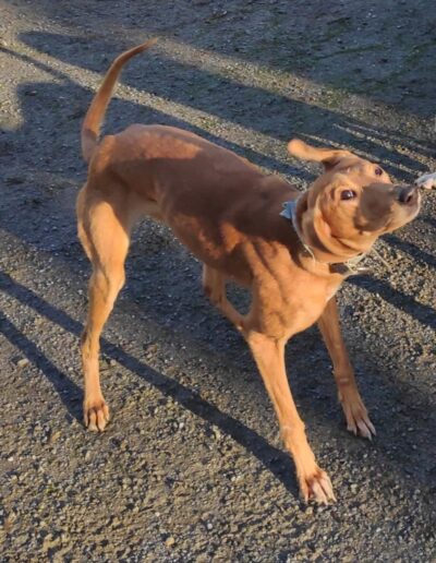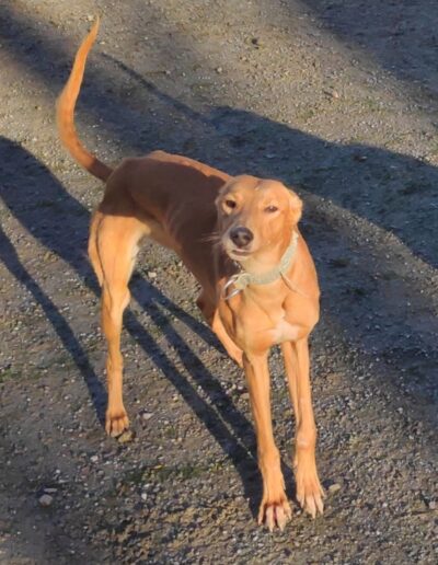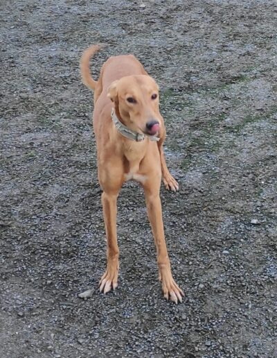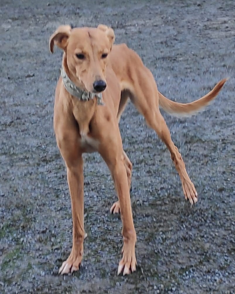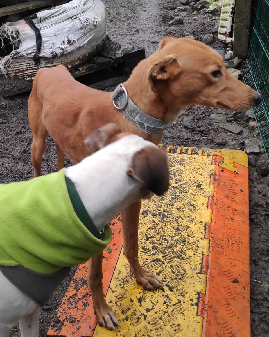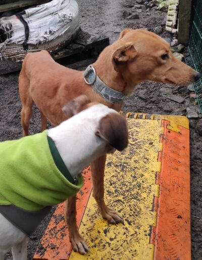 Faith came to us blissfully unaware of social norms and decorum, just knowing that her youth, looks and charm will get her through any situation. And you know what? She’s not wrong. She is a lovely happy, playful and energetic girl who although not used to being handled is quite ok on the lead. When we can, we are hugging and cuddling her to help her get used to touch because at the moment she just uses her mouth to say hello, running around and not letting herself be caught. Everything is a game still.